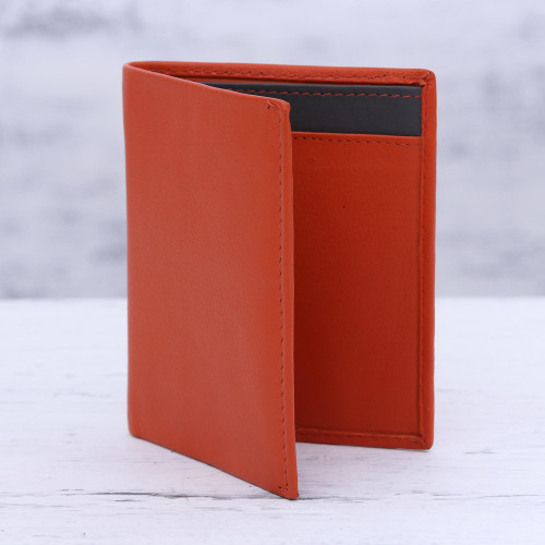 Artisan Sanchit comes from a family that has worked with leather for over five decades, and the passion he holds for his craft is unmistakable in this alluring, red-hued leather card holder. The soft exterior opens to reveal a rich, grey leather interior that features two card holders on either side, and a longer open compartment that is perfect for lengthier items.